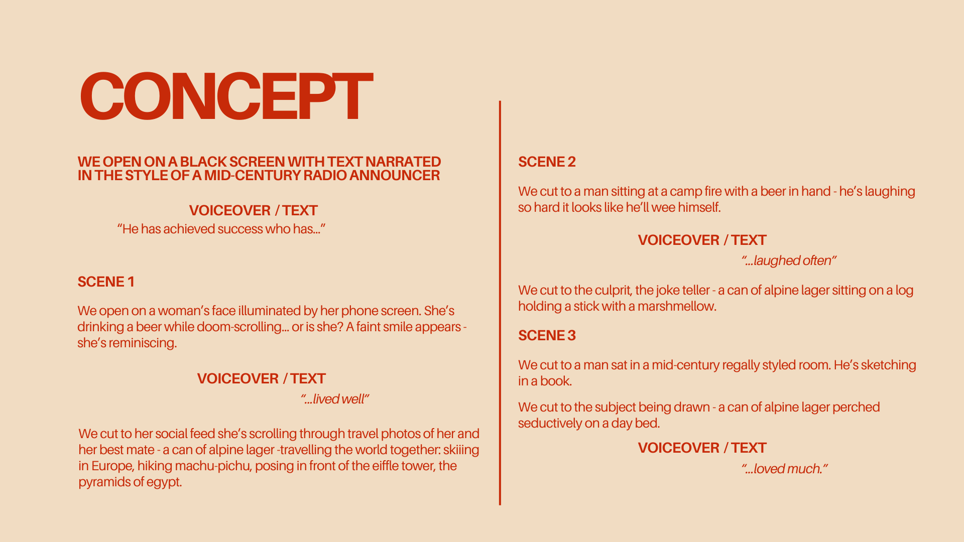 The original director’s treatment that guided the concept, tone, and visual storytelling from pitch through to final production.